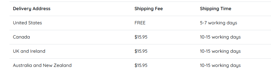 Shipping policy: